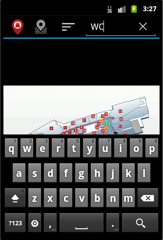 應用程序顯示在Palladium購物中心的室內位置