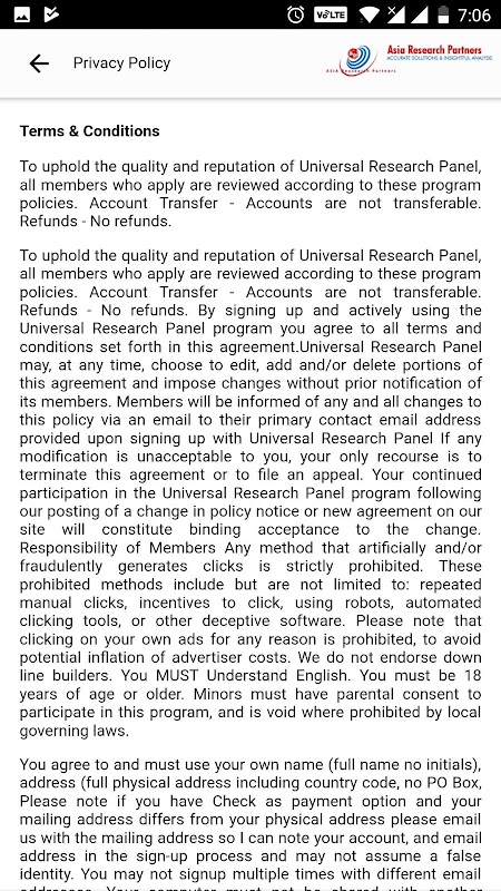 Universal Research Panel App, that takes multiple surveys and provide rewards to the users based on their participation in the surveys.