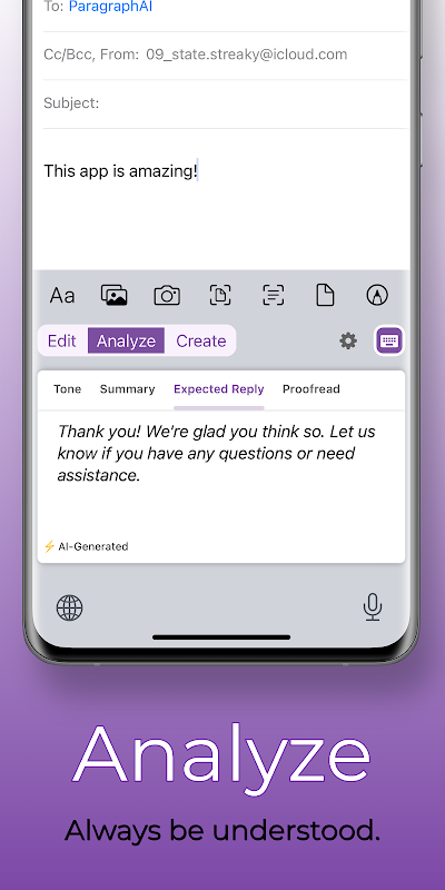 *使用一鍵式 AI 電子郵件編寫器輕按一下即可回復電子郵件。