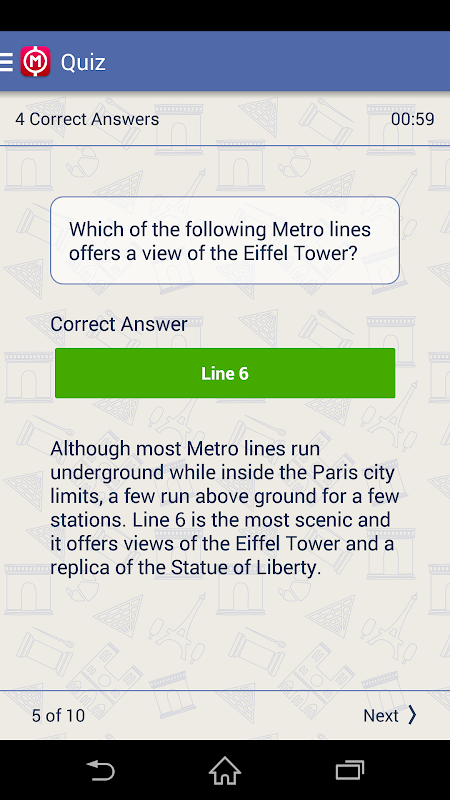 • PARIS METRO QUIZ: Trivia quiz with dozens of questions