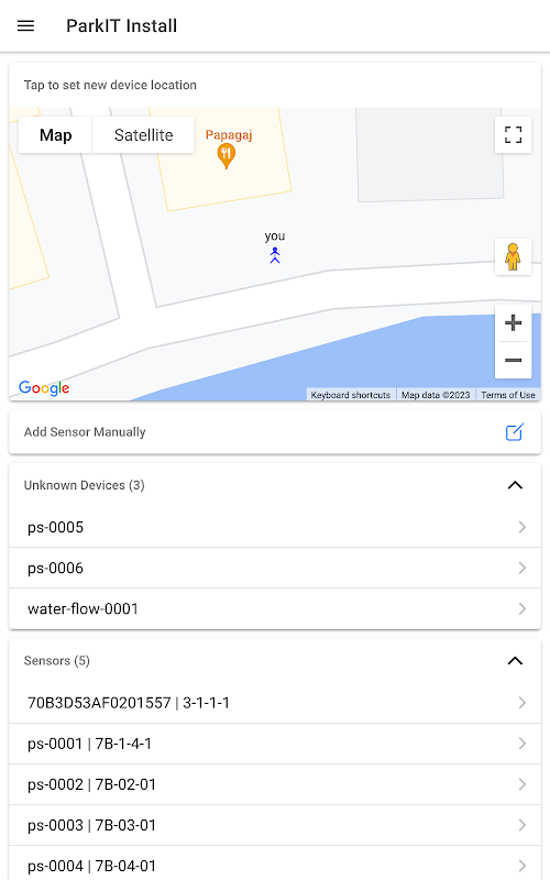 企業物聯網驅動的停車位監控系統安裝和設置應用程序。該應用程序允許通過掃描二維碼和共享設備位置詳細信息,將新的停車傳感器添加到 ParkIT 系統。