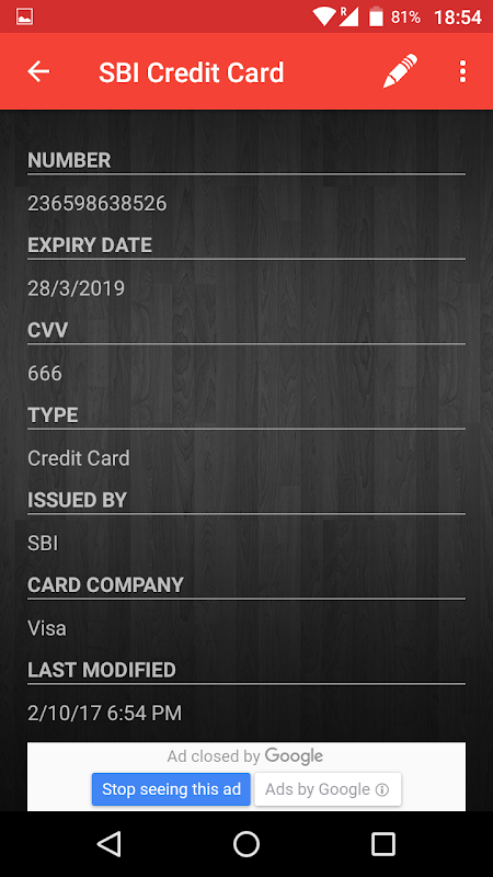答:我們建議您安裝PassNote並首先嘗試添加任何隨機數據作為演示用於測試目的。通過這一點,你就會知道如何操作它,也相信關於它的使用方便和安全性。以後你可以在Android設置中清除應用數據將清除所有數據。而且,那麼你可以將它用於實際的真實數據。您已經添加一切都可以編輯任何沒有。的時候,編輯內置的形式。