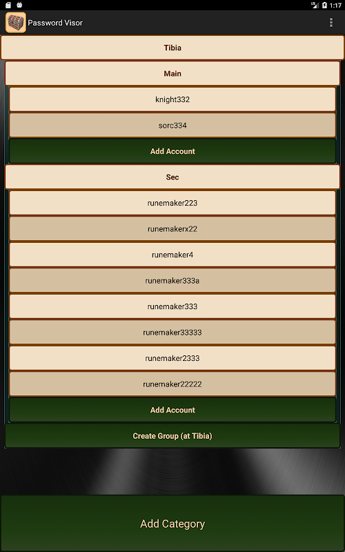 - 排序所有的密碼按類別/組/帳戶。