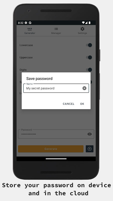 簡單直觀的用戶界面允許生成遵循網站要求的所有安全策略的密碼。