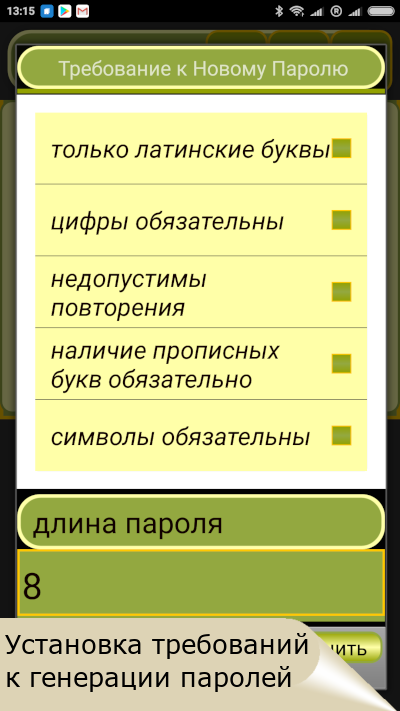PassGen生成隨機序列的非重複拉丁字母,包括小寫和大寫字母,簡單單詞或短語的數字和符號,這些單詞或短語易於記憶並解決了這一難題。您只需要記住該單詞或短語,PassGen就會根據所有現代要求為您生成密碼。可以使用複制粘貼過程將生成的密碼輕鬆插入任何需要的服務中。