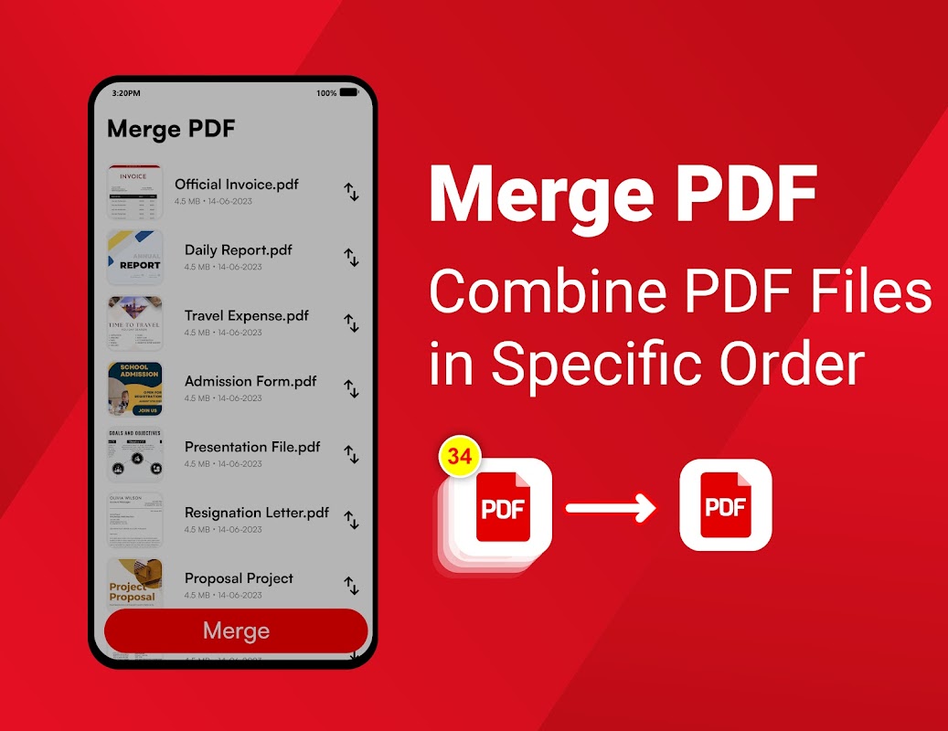 PDF 合并:将多个 PDF 文件合并为一个 PDF 文件。