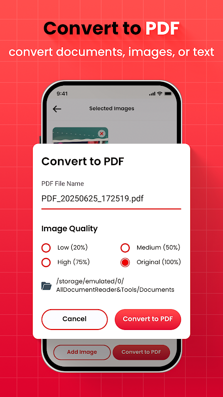 想要將影像轉換為文件?使用「影像轉 PDF」工具,您可以在幾秒鐘內將照片、掃描頁面或螢幕截圖轉換為 PDF 格式。這對於管理視覺文件的學生和自由工作者尤其有用。儲存前,請選擇您喜歡的影像品質—低、中、高或原始。