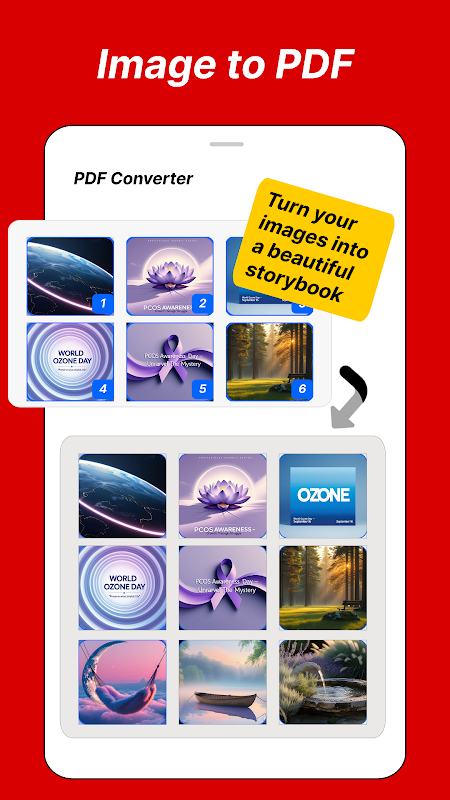 🖼️ 照片轉 PDF:從圖庫中選擇多張圖片,並使用我們的 PDF 閱讀器進行排序。