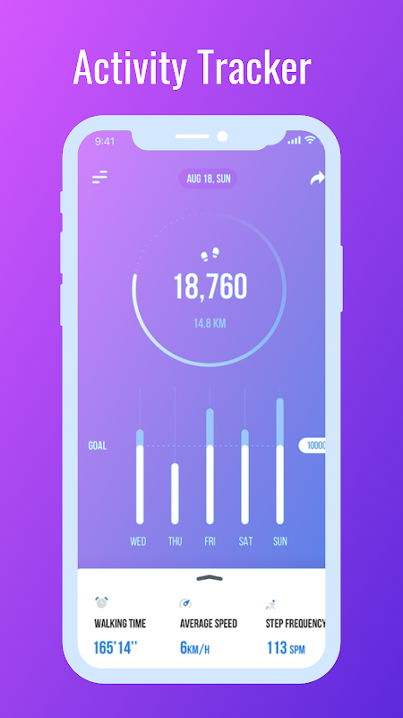 Just tap the start button, and it starts counting your steps. Whether your phone is in your hand, bag, pocket or armband, it can auto-record your steps even your screen is locked.