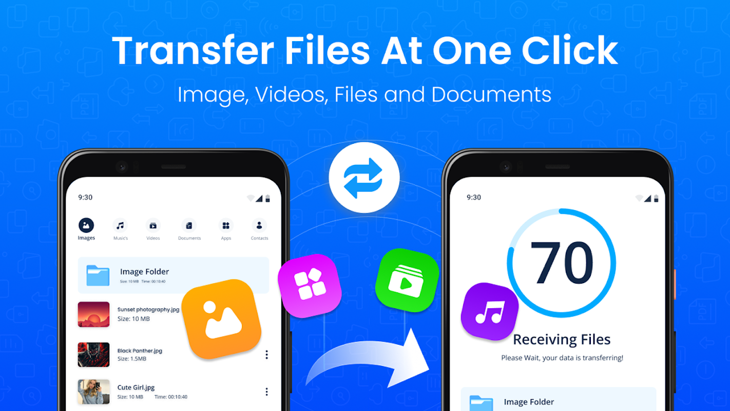 使用我們安全且方便的文件傳輸應用,輕鬆地將重要資料從一台手機傳輸到另一台手機。