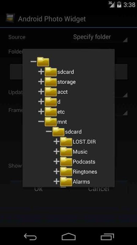 This WIDGET offers 3 different sizes, searching picture on your sd-card. Recursive scan, many borders, option to randomize the order, timed slideshow, image rotation and full screen view with pinch to zoom!