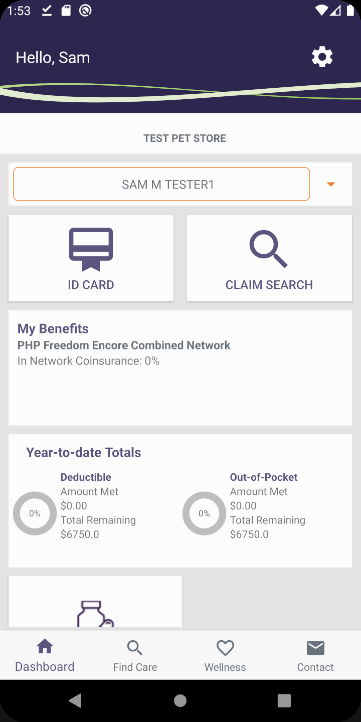 信息中心快速概述了您的計劃福利,上門診共付額以及自付額和自付費用的最高限額。快速滑動屏幕也會為您的家屬顯示此信息。