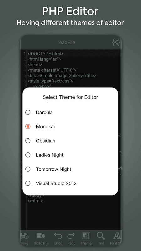 PHP 編輯器具有驚人的功能,如查找和替換、撤消、重做、更改編輯器的字體大小、自動代碼建議等等。編輯器有不同的主題和不同的語法高亮顯示,這將使代碼更美觀,更易於閱讀。