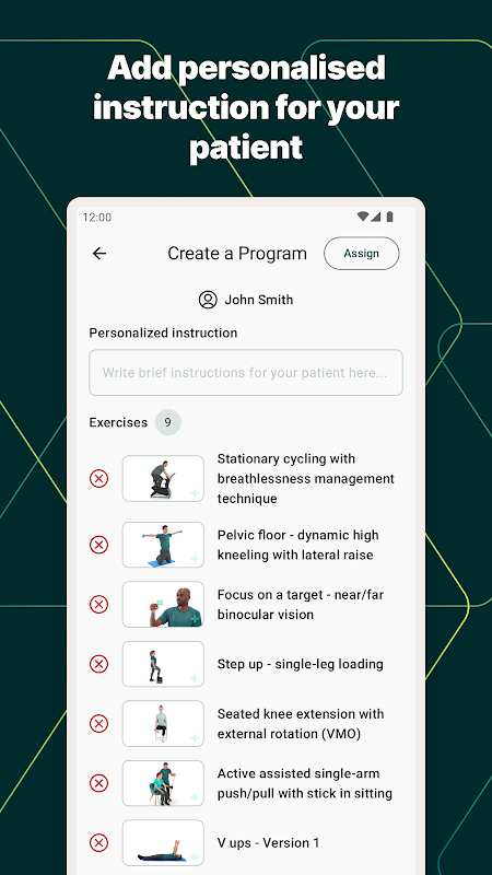 該應用程式的主要重點是速度和便利性。想像從一個預約走到下一個預約,同時毫不費力地設定一個新的患者計劃。 PhysiAssistant 讓您在幾秒鐘內搜尋並添加練習,簡化流程,以便您可以將更多時間投入到真正重要的事情上:提供盡可能最好的護理。
