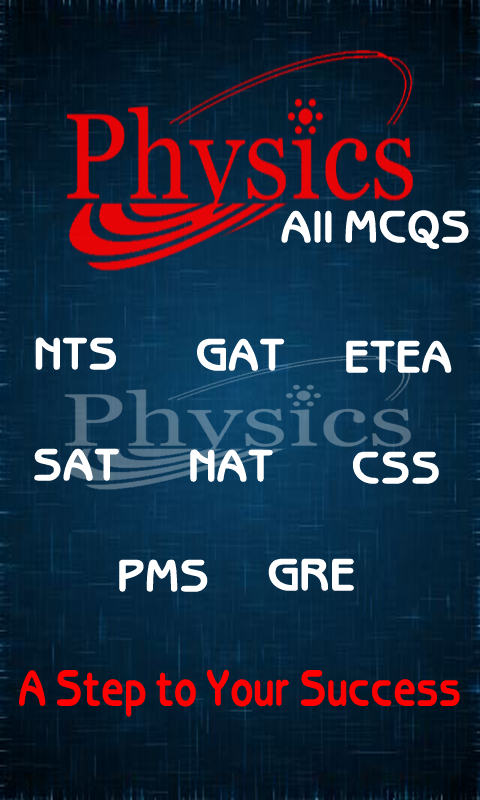 Physics MCQS contains the topics motion, force, work, energy, dynamics , modern physics, electricity, electromagnetism, electrostatic, equilibrium etc, This will lead you to successful future in competitive exams like NAT, GAT ,NTS,ETEA,GRE,CSS,PMS.