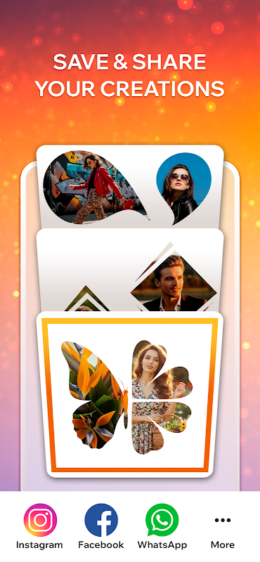 在幾秒鐘內使用創意框架和濾鏡立即創建照片拼貼製作工具。只需輕按一下,即可使用相框應用重新混合您的照片和拼貼圖片。使用相框應用程序可以輕鬆編輯照片。通過使用這個免費應用程序中提供的時尚照片佈局來增強您的創造力。用圖片拼貼應用程序慶祝每一個場合。