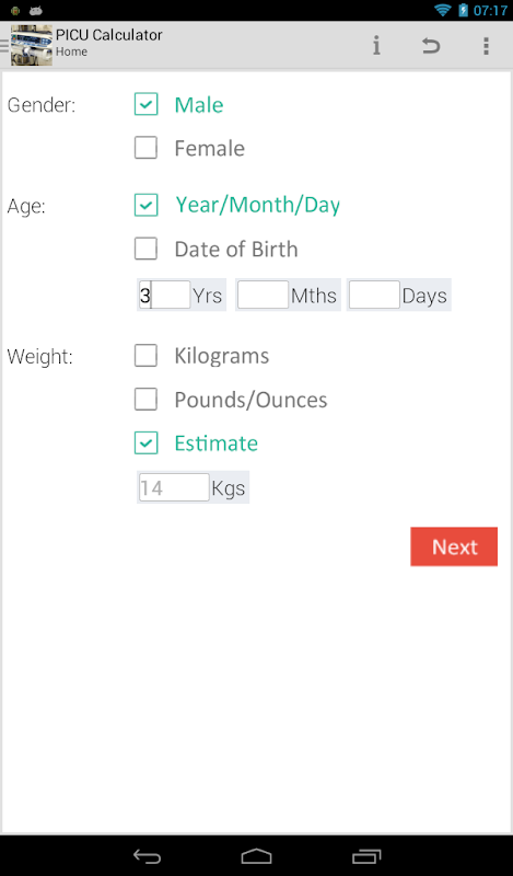 顯示在一項研究,顯著增加了兒科急診(Flannigan和McAloon,復甦2011)處方的速度,精確度和信心。此應用程序已開發臨床醫生的經驗豐富的團隊,提供了豐富的信息,用戶通過幾個簡單的點擊。在幾秒鐘之內的“PICU計算器”提供的正常價值和劑量如下: