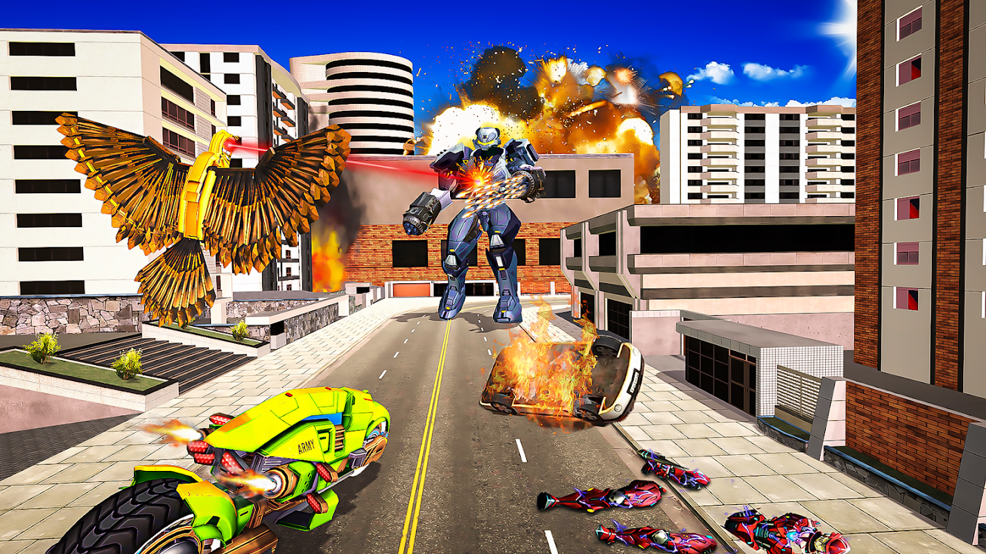 鴿子飛行機器人遊戲專為您設計,讓您擁有無限樂趣的機器人射擊遊戲和自行車變形遊戲。通過使用流暢的飛行控制和擊落敵方直升機和飛行機器人並作為超級破壞性的鴿子機器人飛行,與犯罪機器人作戰。任務,你必須使用你的未來戰爭經驗,隱形任務間諜技能在鴿子遊戲中逃離敵人。享受令人眼花繚亂的機器人自行車遊戲Pigeon Robot Bike Transforming 3D,鴿子與敵人作戰。