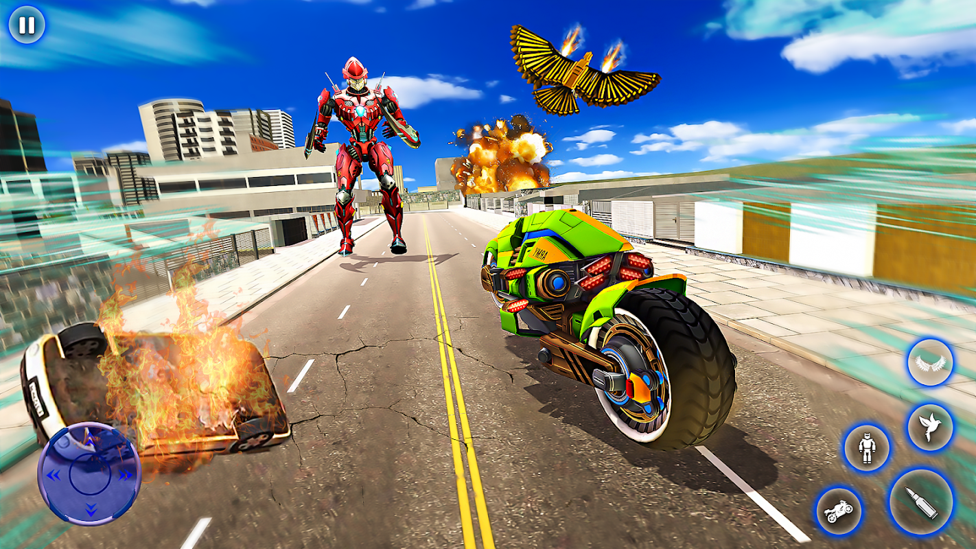 歡迎來到 Pigeon Robot Bike Transform 3D 的機器人類別,您可以在其中變身為運動自行車來摧毀未來的機器人對手。踏入飛鴿遊戲,與機械機器人開戰,從犯罪機器人手中拯救你的國家。執行不同的任務,如跑步、追逐和打擊犯罪機器人,並展示你的鴿子超能力來摧毀該國所有的機器人。擔任未來派機器人鴿子的職責,擊敗所有即將到來的敵人,享受飛行機器人改造遊戲。