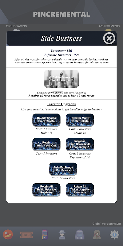 1.10.75 Fixed Auto-Lease Arcades Fixed AutoBuy Arcade Multi —— Added Background Progress!! Fixed bugs with auto-prestige Added reset in saving menu Repaired issues with Number System Setting Further Improved optimization/backend/analytics