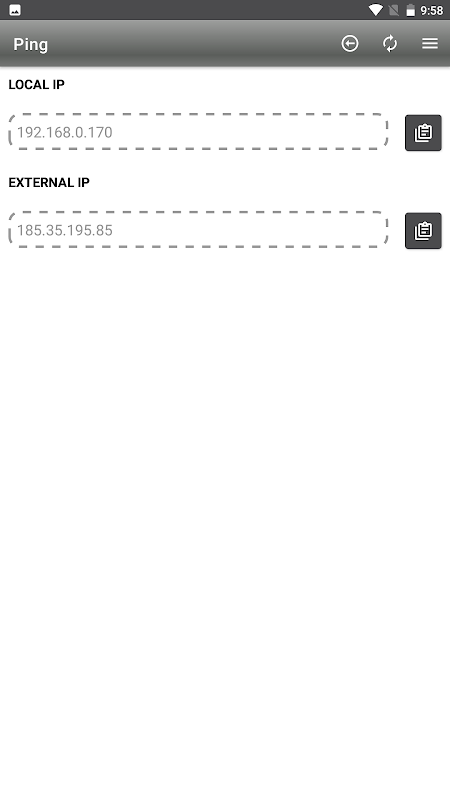 該應用程序允許您簡單快速地檢查輸入中定義的值的 ping。此外,可以定義將發送的包裹數量。您可以從選項菜單複制輸入或輸出內容。您還可以檢查設備的 IP 並測試連接速度。