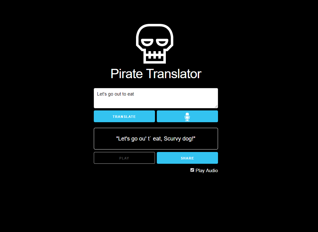 鍵入或海盜翻譯說話,它會改變你的話中海盜的談話。