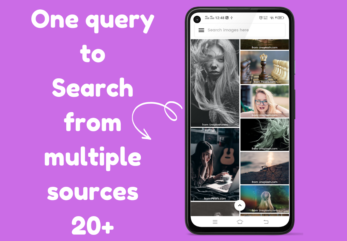 PIXAGO 是一個應用程序,您可以在其中搜索免版稅圖像,並可以根據知識共享許可 (CC0) 出於創意和商業目的下載它們。該工具的設計方式是,它可以針對單個搜索查詢帶來來自多個來源的版權和免版稅圖像。這些來源包括但不限於 unsplash、pexels 和 pixabay。我們的應用程序使用他們的公共 API 來為您提供原生搜索體驗。所有這些來源都提供免版權圖像搜索和免版稅圖像搜索工具。但是,由於您需要單獨訪問他們的網站,因此很難從手機中搜索這些來源。在我們的應用程序中,您可以編寫單個圖像搜索查詢,我們將從所有這些來源獲取圖像作為結果。您可以一鍵下載無版權的圖像。您還可以將這些圖像分享給任何人。您還可以按最新/最相關以及按縱向/橫向/正方形等圖像方向過濾搜索結果。您還可以選擇 unsplash/pexels/pixabay 等來源。