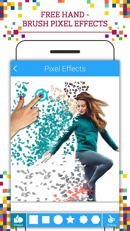 在幾秒鐘內創建驚人的像素色散效果圖片。只需從您的圖庫中選擇圖片或從相機捕獲新圖片,並使用像素畫筆或使用預定義的像素效果模板應用像素效果。