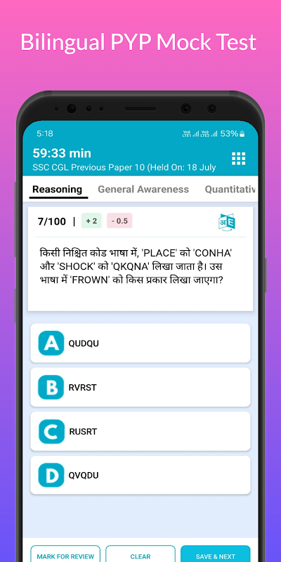 推理筆記和模擬測試應用程式還具有針對 SSC CGL、CHSL、MTS、Steno、CPO、GD、AirForce、BSSC、鐵路和所有競爭性考試的 Chapter Wise 和完整 PYP 線上模擬測試系列。這些線上模擬測驗系列有印地語和英語兩種語言。