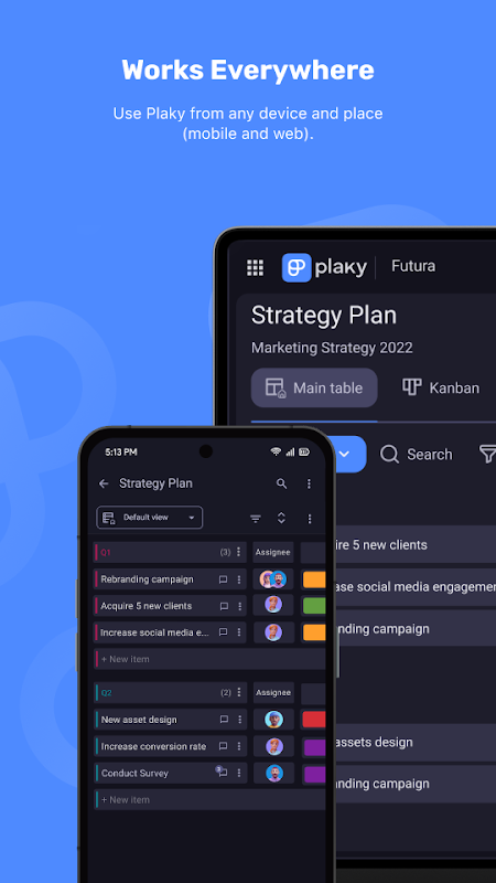 - My tasks: See all tasks assigned to you in one place, so you can stay focused and organized on the go. Customize your view by choosing to group by a specific category, showing or hiding empty groups, and selecting which boards you want to see.