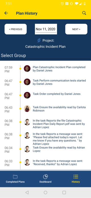 · Monitor plans and tasks progress through a dashboard during or after an emergency.