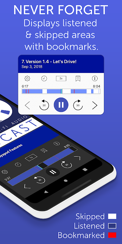 為任何情節中您喜歡的部分添加書籤,以便您快速返回並再次收聽。書籤是按時間編碼的,並且在所有設備上進行云同步。