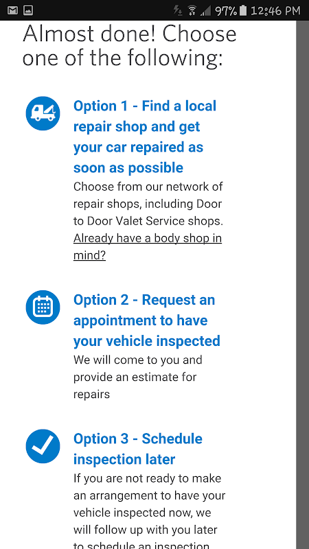 o Report a claim, schedule an inspection and submit pictures of the damages and/or claim scene