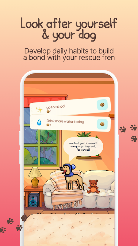 歡迎來到 Pocket Frens——一個自我關愛的伙伴,你的目標和日常習慣將幫助你塑造一隻可愛的救援犬的人生!