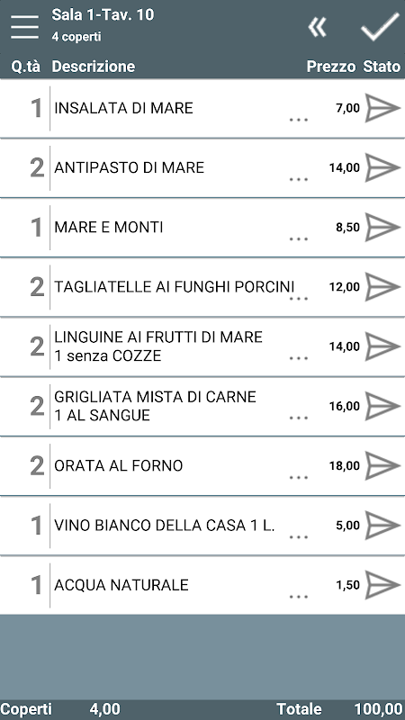 有能力改變的成分,有序的菜餚(沒有或不同數量),改變格式,重量,如果有的話,郵件添加到廚房的工作台,管理固定價格的菜單與您所選擇的菜餚和創建混音不同的菜餚,在日益快速,直觀更多的口味。