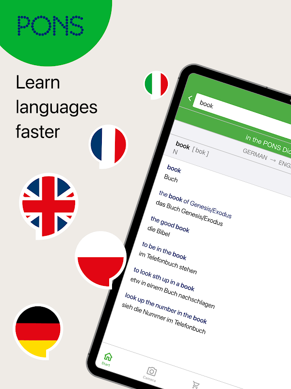 PONS 的免費翻譯應用程式 - 可靠的字典以及照片、語音和文字翻譯