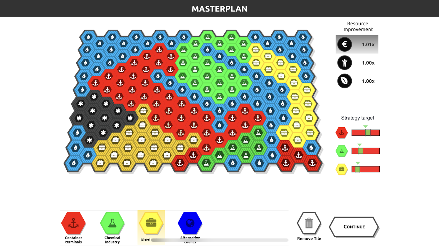 With Port Constructor the developers aim to achieve the following learning objectives. First objective is for the participant to gain knowledge over decision processes in the context of port development and management. Secondly, the game aims to develop a better understanding of spatial occupation and spatial planning required to match supply and demand for space for port expansion. The third objective is for participants to develop better insight into the long(er) term consequences of port planning, development decisions, both for people, planet and profit. Ultimately, with this game the developers aim to stimulate a holistic, multidisciplinary thinking with (direct and indirect) stakeholders in relation to port and port-city development.
