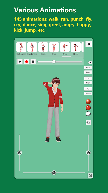 您可以簡單地從姿勢庫中加載姿勢。您還可以從動畫中獲得許多姿勢。目前這個應用程序有145個動畫,100多個身體姿勢和30個手勢。