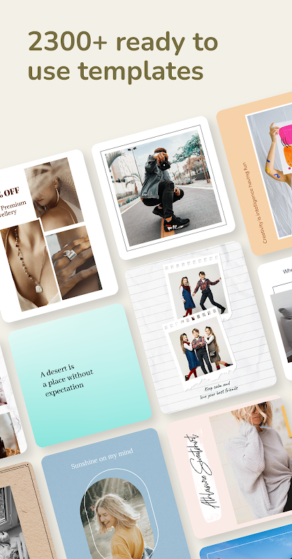 Handpicked Templates: Choose from hundreds of beautiful handpicked templates using this to work as social media post maker, promo images, posters, or DPs for Instagram, or Facebook. You can also choose a color or a photo from your gallery as a background. This way, you can modify pre-loaded templates easily without any graphic designing knowledge.