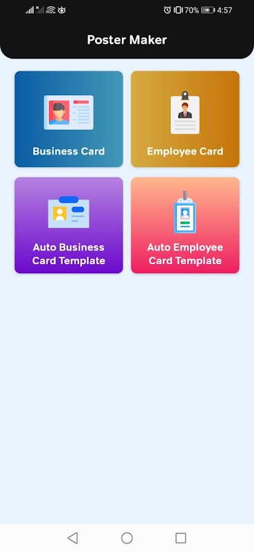 隆重推出我們多功能且用戶友好的名片和海報製作應用程序,這是您創建專業且迷人的宣傳材料的終極工具。傳單海報製作者平面設計橫幅製作者。創意海報設計。廣告海報設計。名片製作者和創作者帶照片的名片製作者。免費名片設計。員工 ID 徽章製作者。帶有名稱和圖像的照片海報製作器。