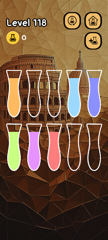 你的任務很簡單:將彩色水倒入試管之間,直到每個試管中只有一種顏色。隨著遊戲的進行,謎題難度會逐漸增加,考驗你的邏輯思維、專注力和耐心。