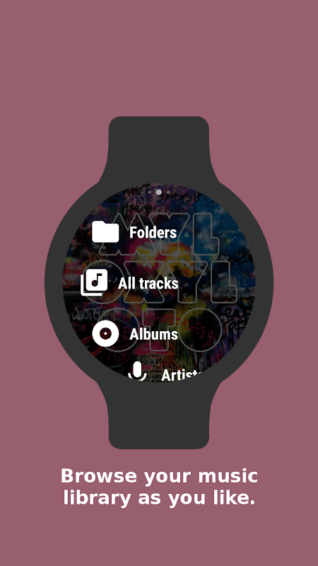 Poweramp Wear Controller is optimized for round devices - you can use circular scrolling gesture, to quickly and conveniently scroll between a large number of songs in your library (but you need to enable it in settings first).