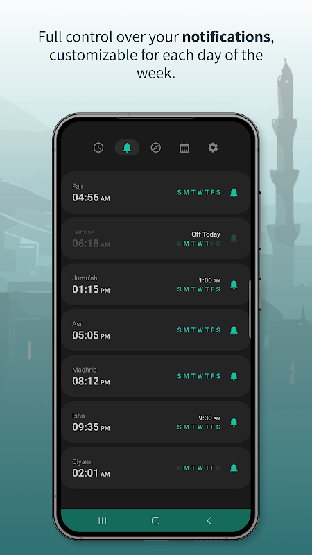 取得有關祈禱的通知。從各種宣禮、通知音或靜音中進行選擇。自訂通知的控件,包括靜音模式和暫停。設定禮拜時間前後的提醒通知。