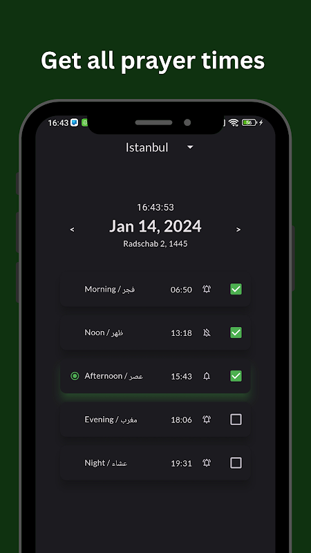 取得當天祈禱時間的簡約應用程式: