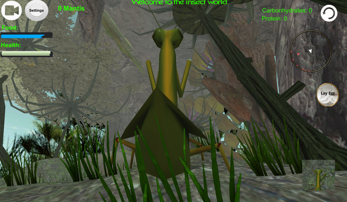 In this inesct simulator and animal simulator you can expire adventures from the perspective of a praying mantis. This 3D survival game and animal simulator will set you into a realistic simulation of the insect world. Establish your own virtual mantis family. Search for food resources to feed your larvas. Explore a huge detailed natural habitat filled with other insects that could attack you.
