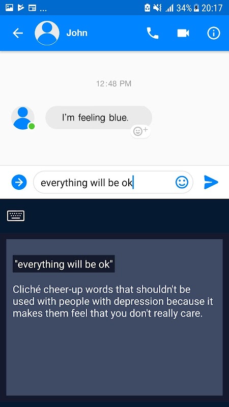 對於誰患有抑鬱症的人,每一個你說的還是選擇跟他們重要的,因為正常的談話會直接影響他們的思想和感情的話。如今,有3.5億人與世界各地的抑鬱症。其中一人可能是你的家人或親人。研究還發現,通過文本通信比臉更危險的面對面的交流,因為我們不能在我們的聲音,面部表情,甚至對你是多麼關心他們舉止音通過。