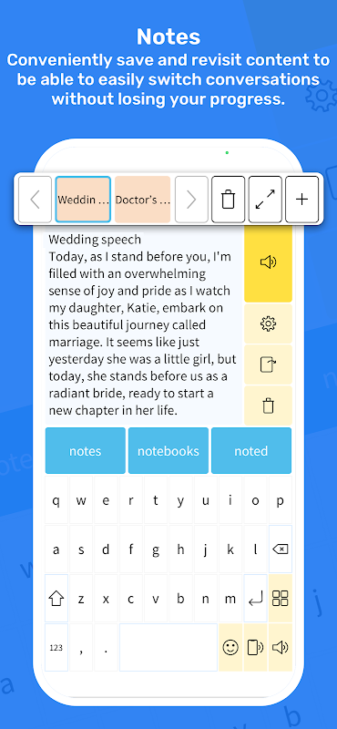 該應用程式使用智慧單字預測技術,使說出基於文字的訊息變得容易。 Predictable 會根據您的使用模式進行學習,並預測您接下來要輸入的內容,讓輸入變得更輕鬆、更有效率。