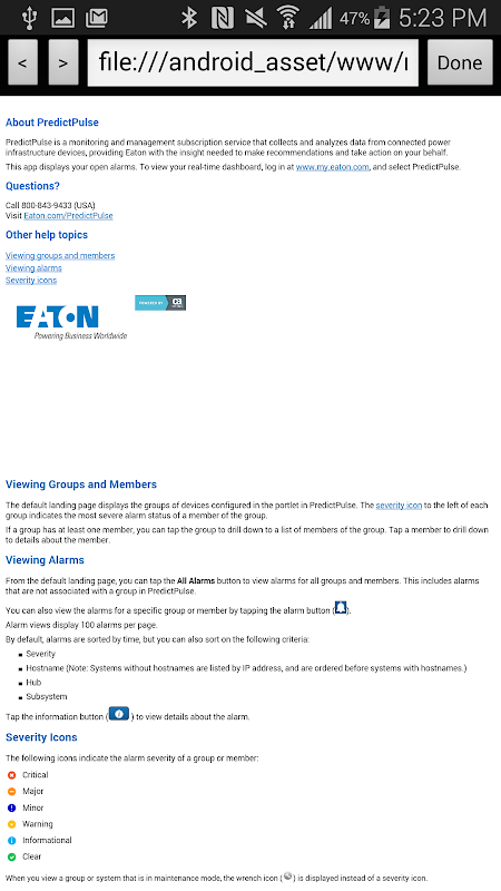Eaton’s PredictPulse app gives PredictPulse subscribers mobile access to their UPS (uninterruptible power supply) alarm data.