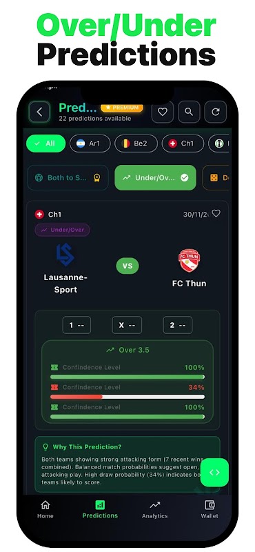 使用我們基於金幣的系統,充分利用 PrediKick。每日賺取金幣,觀看獎勵視頻,並解鎖獨家高可信度預測和高級分析功能——無需任何真金白銀。
