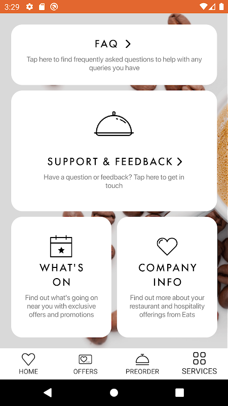 Don’t have time to queue? Then try the pre order function, allowing you to pre order items at the palm of your hand ready for collection.
